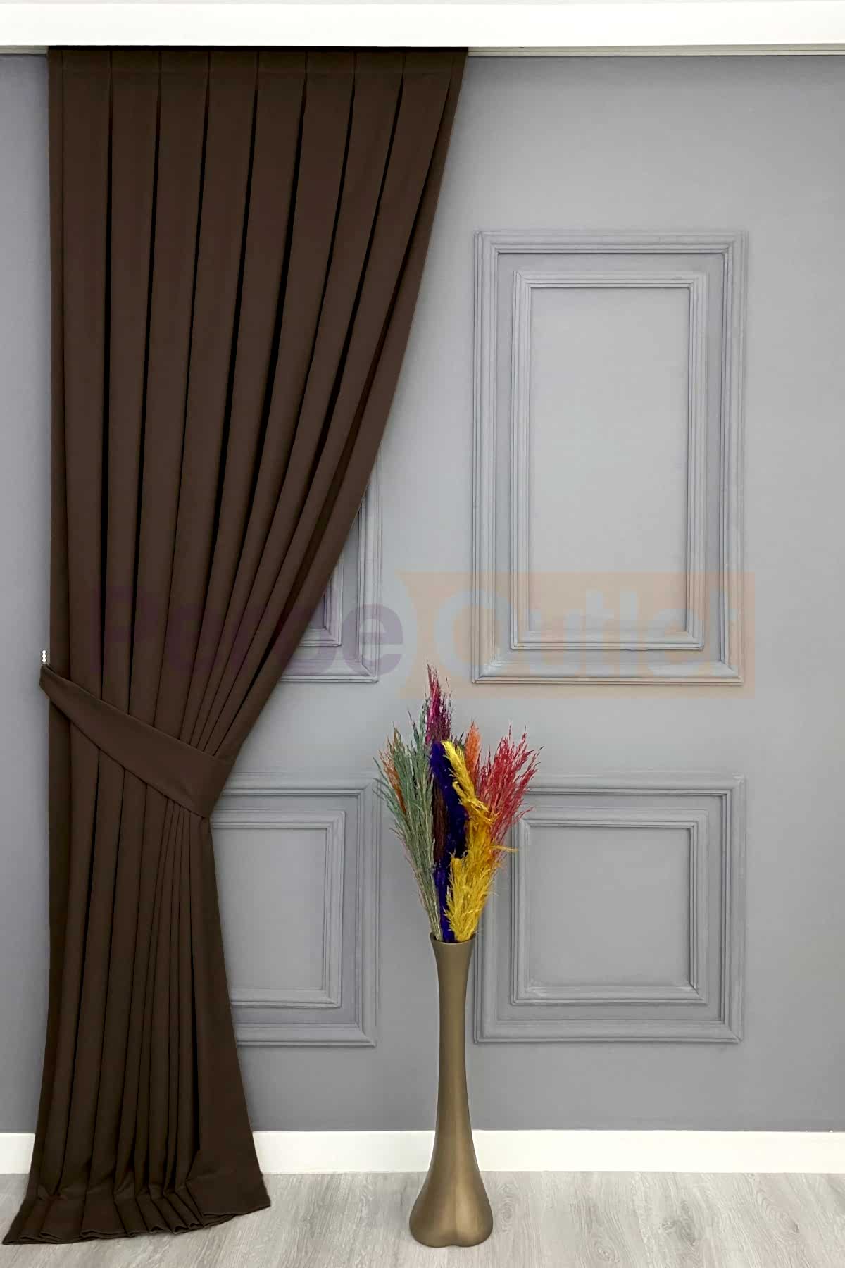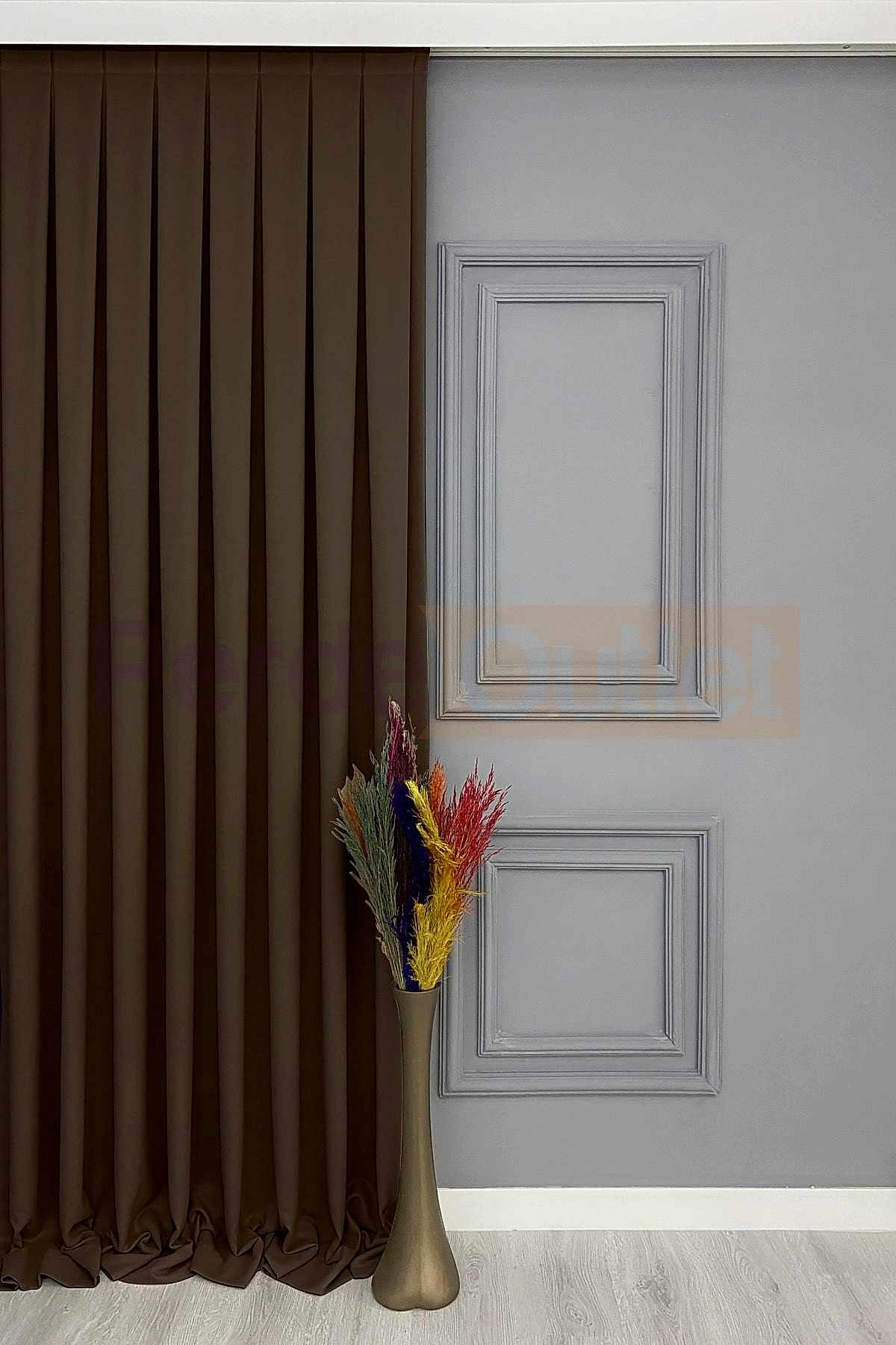 1 – Hazır Koyu Kahve Düz Fon Perde