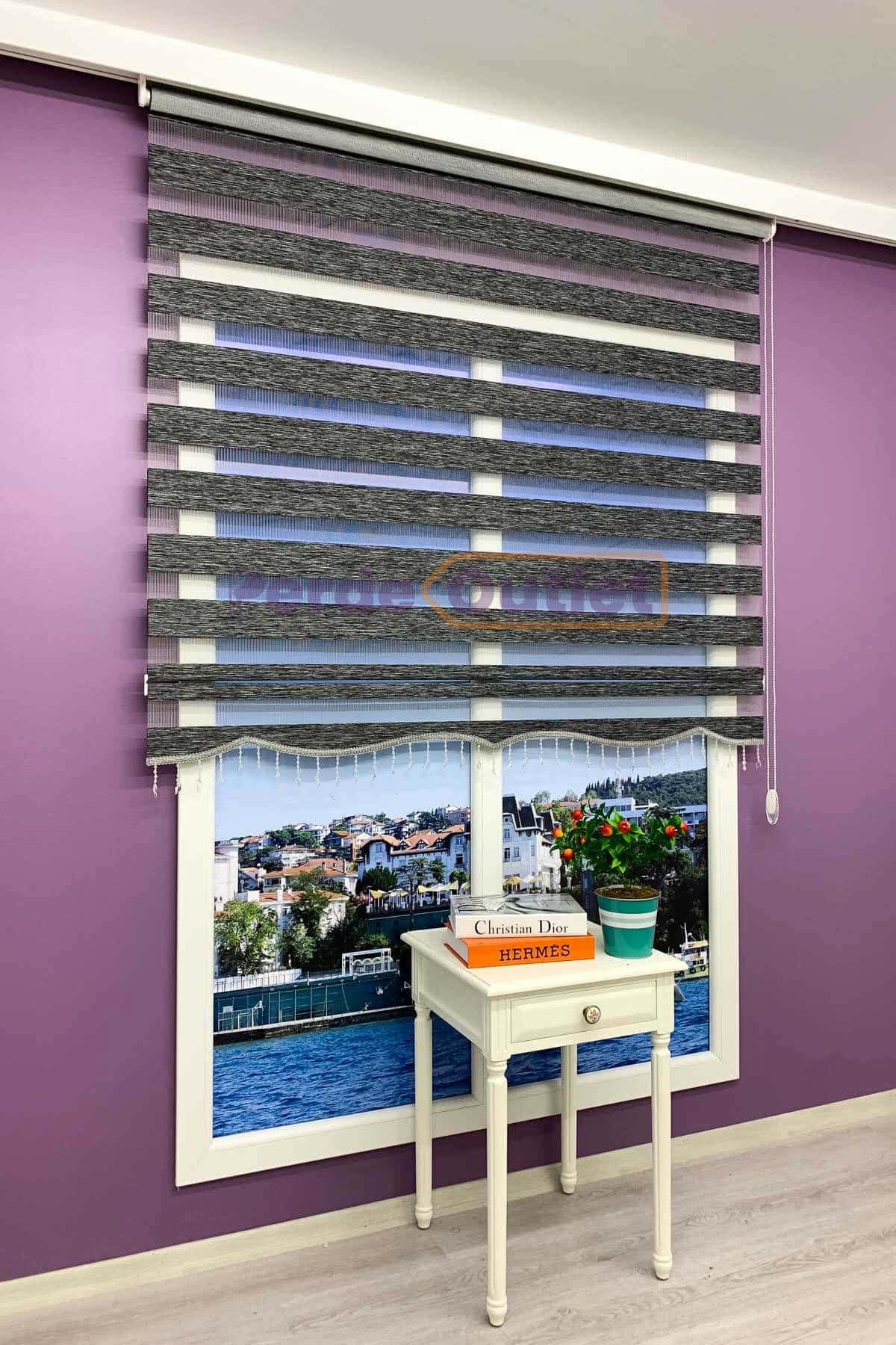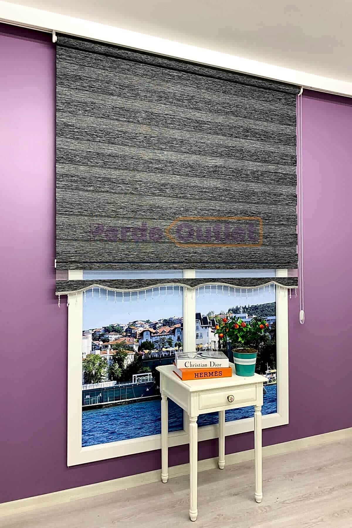 Siyah gri kırçıllı bambu zebra perdelerimizin dekoru, görkemli renkleriyle odalarınızı güzelleştirir. Görünüm, çok fazla çaba harcamadan temiz ve modern bir vitrin oluşturur ve birçok dekor stiline kolayca uyum sağlar. Bu perdeler ile yemek odanızı, mutfağınızı, banyonuzu, salonunuzu ve çocuk odalarınızı süsleyebilirsiniz ve her pencereyi donatabilirsiniz.